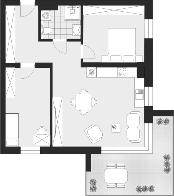 Zapraszamy do zapoznania się z ofertą funkcjonalnego, 3-pokojowego mieszkania składającego się z pokoju dziennego z aneksem kuchennym, łazienki i balkonu.